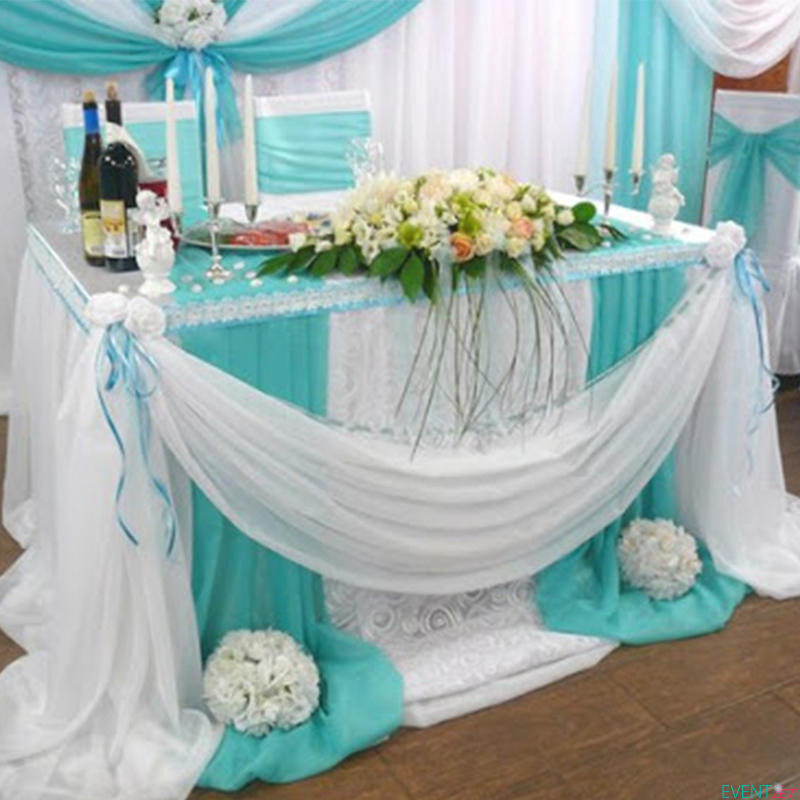 — оформление тканями, цветами и воздушными шарами